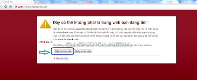 Khi đăng nhập facebook với Google chrome có thể xảy ra tình trạng như ảnh sau, các bạn đừng thoát ra mà bấm vào nút "tiếp tục truy cập", yên tâm không có virus đâu.